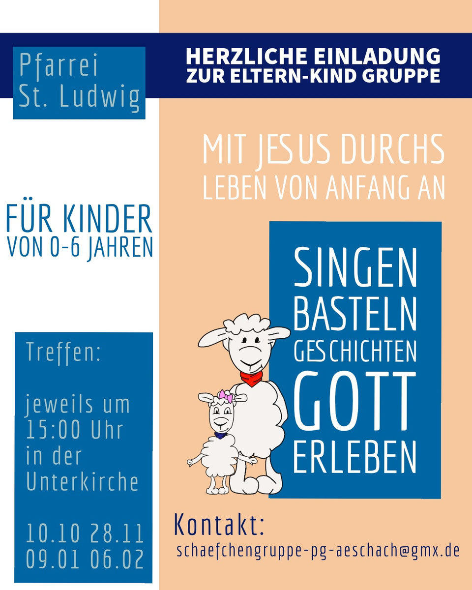 11.04.25, 09.05.25, 06.06.25, 11.07.25 Wir freuen uns auf Euer Kommen! Ihre Eltern Kind Gruppe von St. Ludwig, Aeschach.
